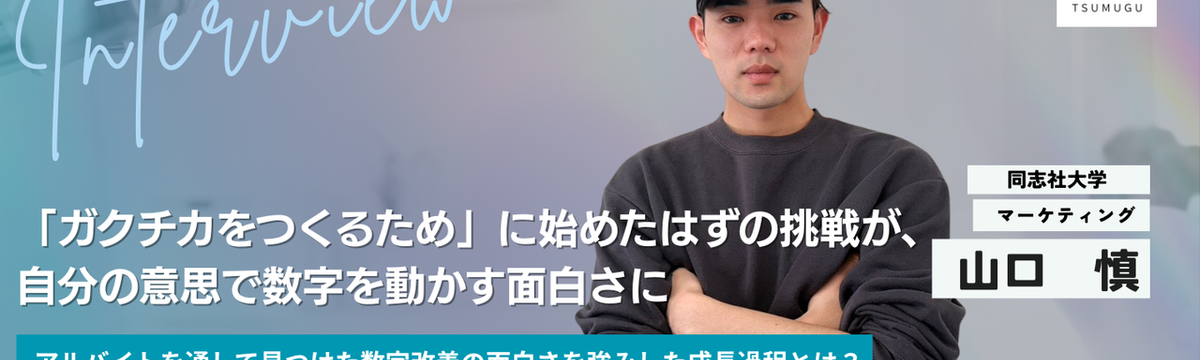 株式会社つむぐ 14 days ago Follow つむぐ 採用チーム and 1 others 居酒屋バイトでは得られなかった「強くなっている感覚」。単なる“作業者”で終わらない。事業づくりの上流から関わり「0... 大学生活を普通に過ごすだけでは、自分は何も変わらない——。そんな思いを抱きながら、同志社大学・今井さんはアルバイトを辞め、大学2年生からつむぐでの長期インターンに挑戦し始めました。「努力すれば成... Read more