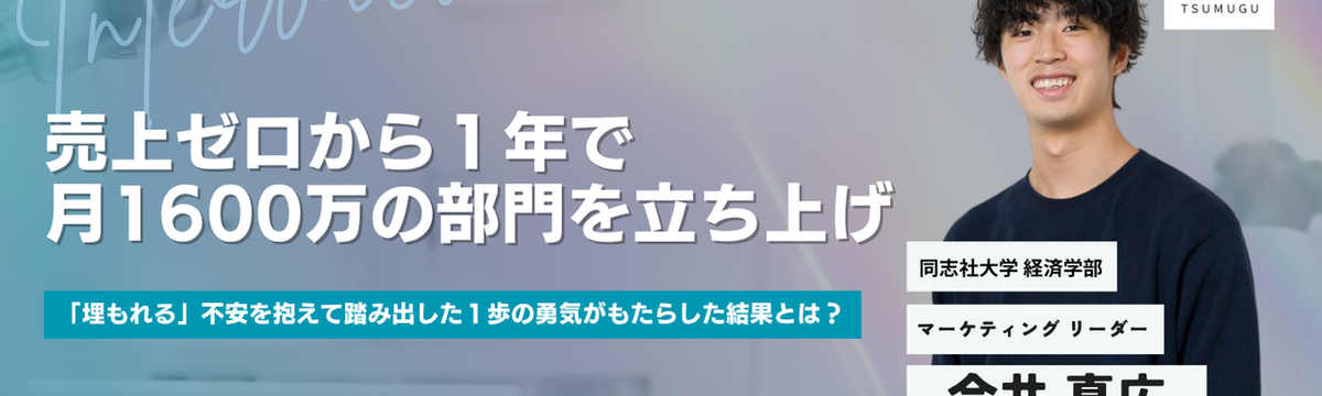 株式会社つむぐ 18 days ago Follow つむぐ 採用チーム 居酒屋バイトでは得られなかった「強くなっている感覚」。単なる“作業者”で終わらない。事業づくりの上流から関わり「0... 大学生活を普通に過ごすだけでは、自分は何も変わらない——。そんな思いを抱きながら、同志社大学・今井さんはアルバイトを辞め、大学2年生からつむぐでの長期インターンに挑戦し始めました。「努力すれば成... Read more