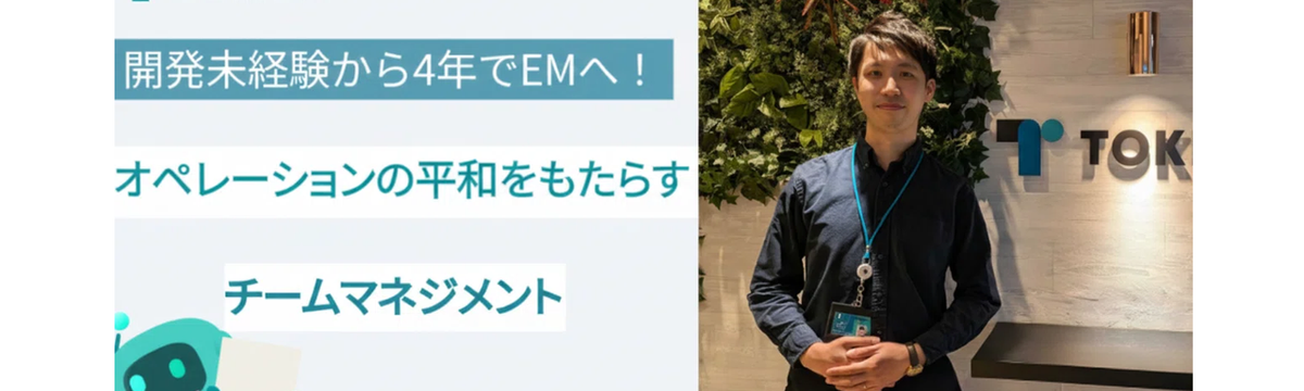 株式会社TOKIUM about 1 month ago Follow 株式会社TOKIUM エンジニア採用担当 開発未経験から4年でEMへ!TOKIUMの魅力は「協力解決」文化。オペレーションの"平和"をもたらすチームマネジメント 「AI開発に携わりたいけど、本当に技術的な挑戦ができる環境はどこだろう?」「中途からEM(エンジニアリングマネージャー)に挑戦したいけど、本当に可能なのだろうか?」――。高度な技術とマネジメント... Read more