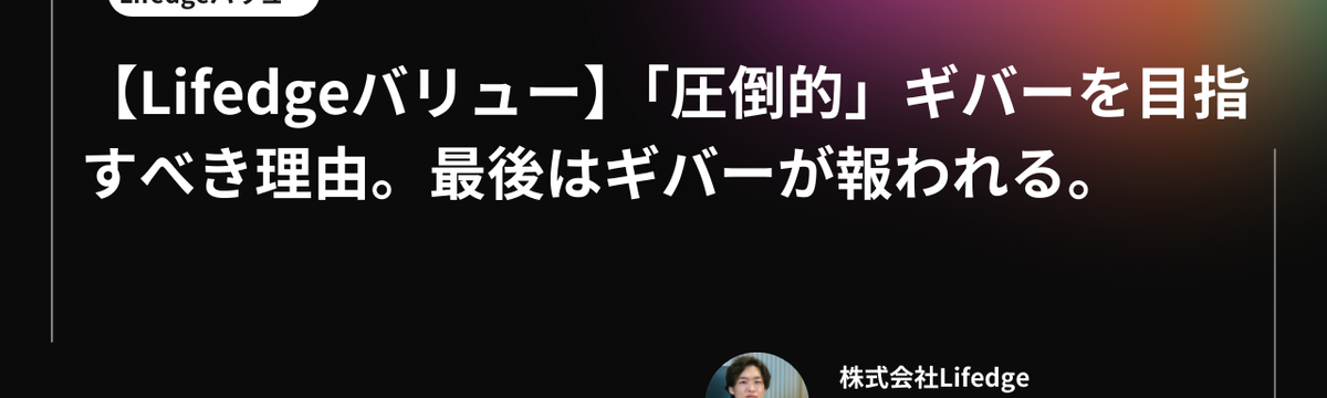 株式会社Lifedge about 17 hours ago Follow Daisuke Sugimoto 【Lifedgeバリュー】「圧倒的」ギバーを目指すべき理由。最後はギバーが報われる。 最初に売れなかった私を救ってくれたのは、“多めに渡す”という直感でした「売る」より先に「喜んでもらう」を選んだとき、道が開いたギバーは一見お人好しにも見える。でも、最後に総取りするLifedge... Read more