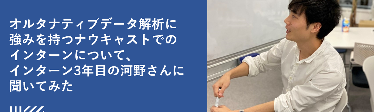 インターン情報 over 5 years ago Follow Ayumi Miyakawa オルタナティブデータ解析に強みを持つナウキャストでのインターンについて、インターン3年目の河野さんに聞いてみた POSデータやクレジットカードデータなどのオルタナティブデータを解析し、消費や経済の“今”を知るサービスを提供する株式会社ナウキャストでは、学生インターンが多数活躍しています。今回、学部時代から... Read more