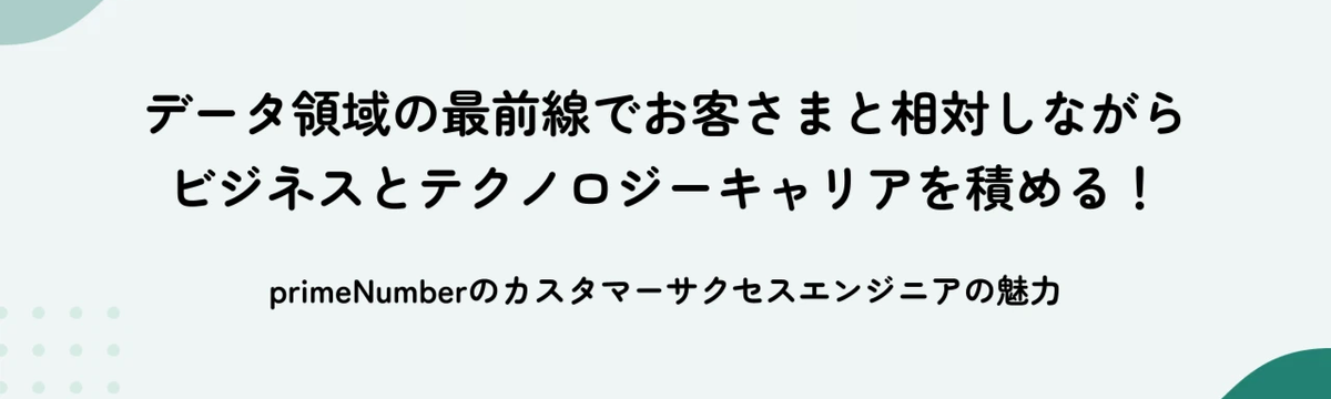 株式会社primeNumber 9 months ago Follow 大野 愛実 データ領域の最前線でお客さまと相対しながらビジネスとテクノロジーキャリアを積める!primeNumberのカスタマ... カスタマーサクセスエンジニア(以下CSE)という職種をご存じでしょうか。カスタマーがビジネスで成功できるよう支援する「カスタマーサクセス」の中で、技術面からお客さまへ価値をお届けするのがCSEの... Read more