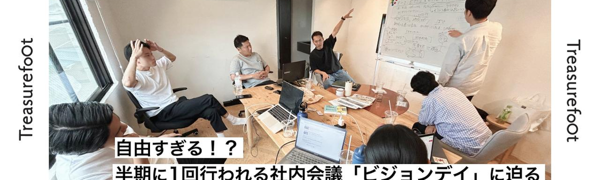株式会社トレジャーフット about 1 year ago Follow 齊藤 圭 自由すぎる!? 半期に1回行われる社内会議「ビジョンデイ」に迫る トレジャーフットでは半期に1回、半期の振り返りや今後の事業計画、さらにはメンバー全員が参加をするグループワークなどを行う社内イベント「ビジョンデイ」を行なっています。今回は6月末に行われた「ビジ... Read more