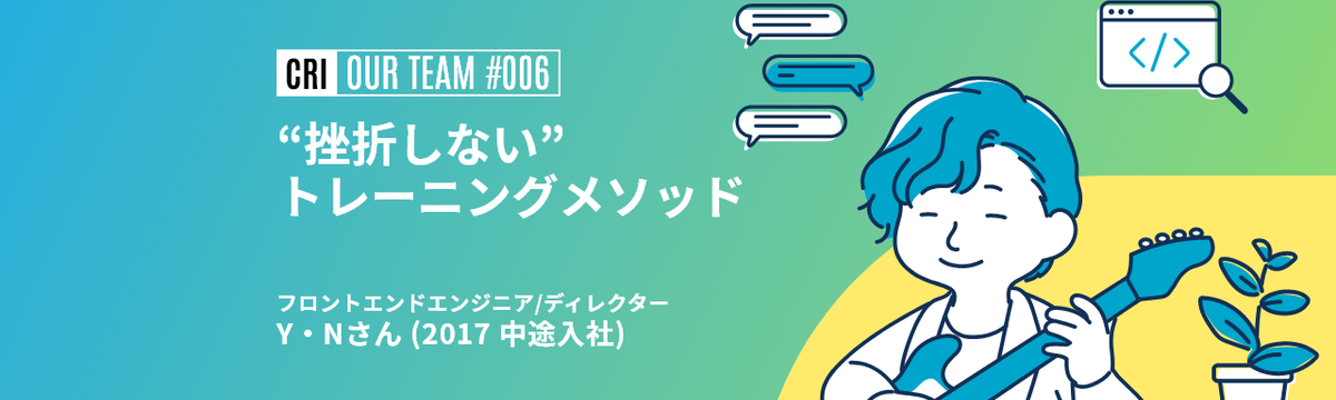 OUR TEAM almost 3 years ago Follow 渡邉 茜 【社員インタビュー #006】“挫折しない”でプロフェッショナルになる、クリエーター育成プログラムとは? こんにちは!株式会社クリエイティブリソースインスティチュート(CRI)の渡邉です。今回は弊社でフロントエンジニア、ディレクターとして活躍されているY・Nさんにお話を伺いました!ご自身の経歴や業務... Read more
