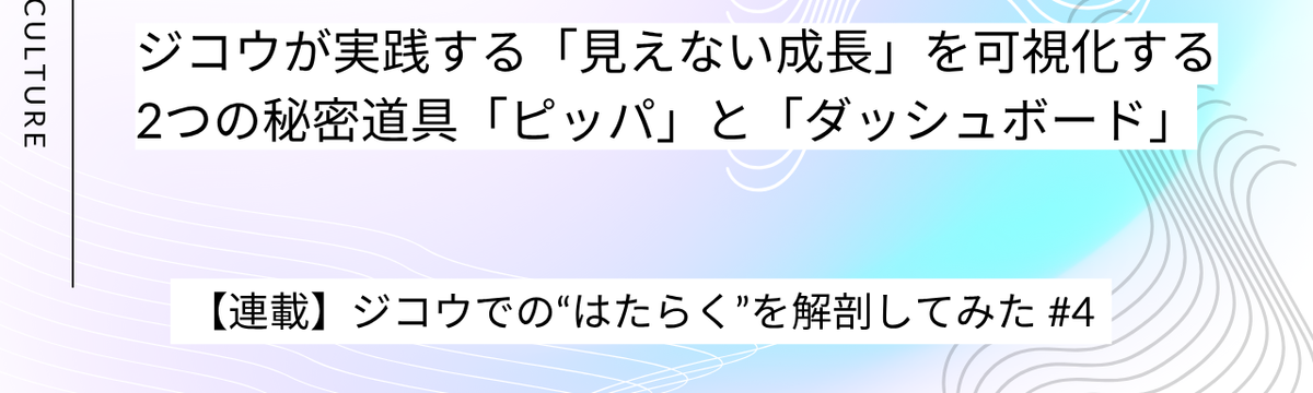 株式会社ジコウ about 9 hours ago Follow 株式会社 ジコウ 【カルチャー紹介】ジコウが実践する「見えない成長」を可視化する2つの秘密道具「ピッパ」と「ダッシュボード」 こんにちは、ジコウです。この連載【ジコウでの“はたらく”を解剖してみた】では、私たちが日々の仕事を通じてどんな価値観を大切にしているのかを、言葉にしてお届けしています。これまでの記事では、ジコウ... Read more