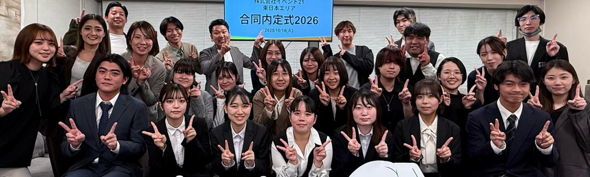 株式会社イベント21 about 5 hours ago Follow イベント21 採用チーム 【2026年度 東日本エリア内定式】you happy, we happy!を胸に、新たな仲間と共にスタート! 10月14日、東京・神奈川・千葉・埼玉の4拠点合同で「2026年度内定式」を開催しました。今年は7名の内定者が参加し、笑顔と感動に包まれた一日となりました!会場準備から運営までは、東日本エリアの... Read more