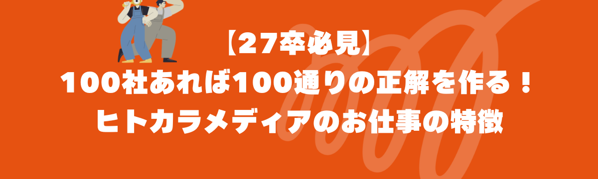 株式会社ヒトカラメディア 12 days ago Follow akika hibino 【27卒必見】100社あれば100通りの正解を作る!ヒトカラメディアのお仕事の特徴 「やりたいことはまだ決まっていないけれど、誰かの課題に深く寄り添いたい」 「型にはまった営業ではなく、自分の頭で考えた価値を届けたい」そんな想いを持つ27卒のみなさんへ。 今回は、ヒトカラメディ... Read more