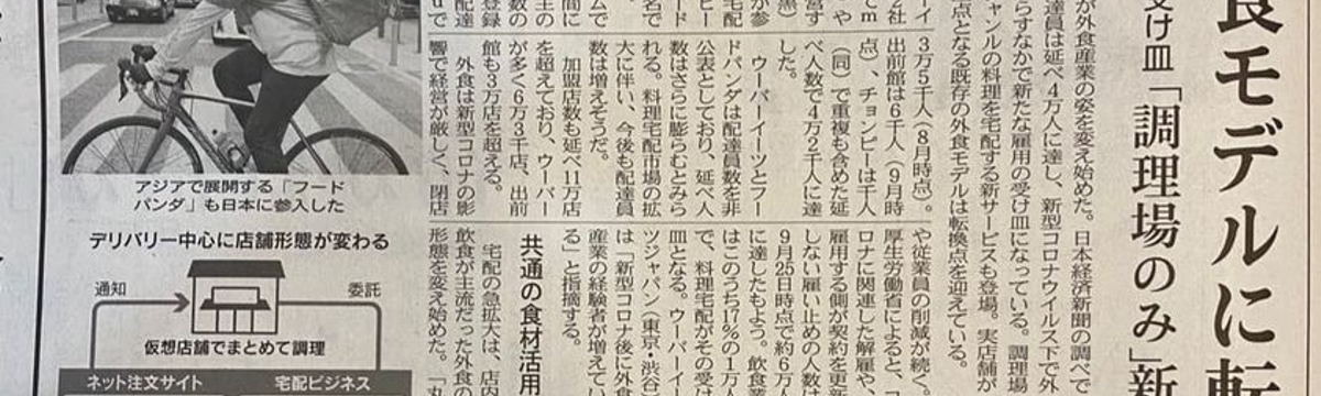 株式会社ゴーストレストラン研究所(Ghost Kitchens) over 4 years ago Follow Ghost Kitchens 2020/10/10 日経新聞 さんの紙面に弊社がチラリ 【メディア掲載情報】#日経新聞 さんの紙面に弊社がチラリ外食モデルの転機に関する記事の中で取り上げていただきました!ほんの数年、数カ月のうちに外食産業の状況はガラリと変わり、今では料理宅配員さん... Read more