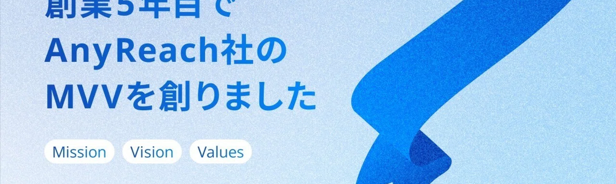 AnyReach株式会社 3 days ago Follow Marina Watanabe and 1 others 創業5年目でAnyReach社のMVVを創りました AnyReach株式会社、代表の中島です。これまで4年間、ビジョンのみ定めて会社を経営してきましたが、創業から5年目に入り、ようやく正式にMVV(ミッション・ビジョン・バリュー)を創りました。こ... Read more