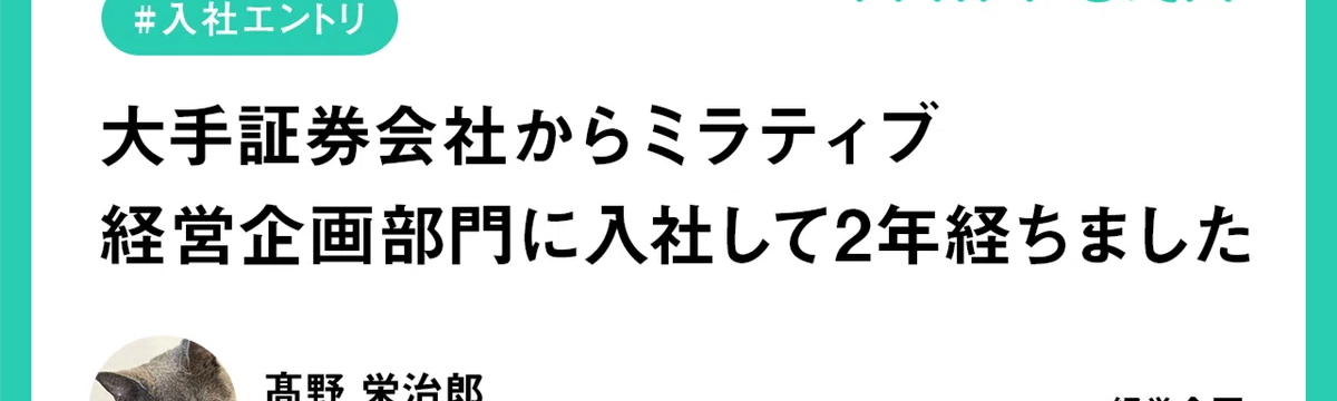 株式会社ミラティブ 8 days ago Follow ミラティブ採用担当 大手証券会社からミラティブ経営企画部門に入社して2年経ちました ※2024年10月28日時点の記事ですこんにちは!株式会社ミラティブで経営企画部に所属している髙野です。ミラティブに入社してあっという間に2年が経過しました。このタイミングではありますが、今回は... Read more