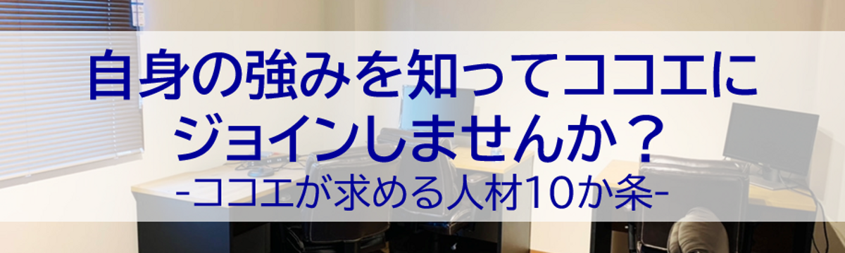 株式会社ココエ over 4 years ago Follow Takehiro Tsuboi 自身の強みを知ってココエにジョインしませんか?-ココエが求める人材10か条- “自分が思っている強みが、他人からはそう見えていなかった”こんにちは。ココエブログ編集長の坪井です。皆さんは「自分の強みが何か」をどこまで認識しているでしょうか?“自分が思っている得意なことが、... Read more