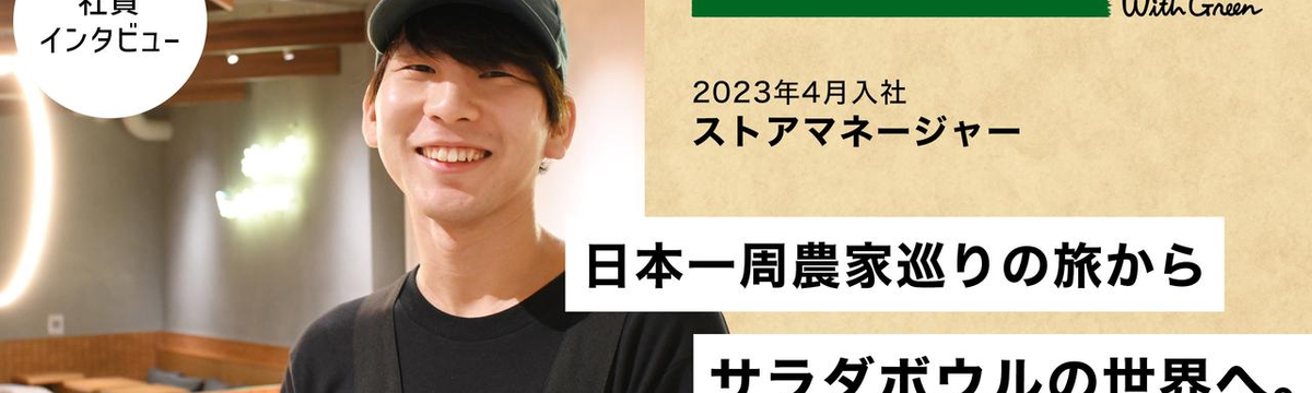 社員インタビュー over 1 year ago Follow 谷村 紘美 【ストアマネージャーインタビュー】日本一周農家巡りの旅からサラダボウルの世界へ。 「サラダボウルで持続可能な未来をつくる」ことを掲げて、サラダボウル専門店を全国展開するWithGreen。今回は新宿3丁目店のストアマネージャーを務める小林よおさんに、入社の経緯から仕事のやりが... Read more