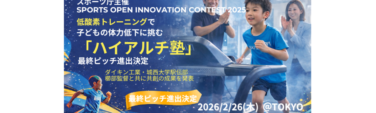 High Altitude Management株式会社 17 days ago Follow 山本 羅衣 【SPORTS OPEN INNOVATION CONTEST 2025】低酸素トレーニングで子どもの体力低下に挑... High Altitude Management株式会社(代表取締役:坪井玲奈)が運営する低酸素トレーニング専門スタジオ「ハイアルチ」は、スポーツ庁主催の SPORTS OPEN INNOVAT... Read more