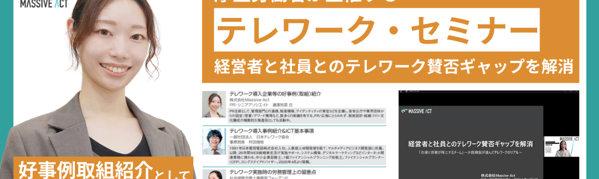 株式会社Massive Act about 2 months ago Follow Reina Hamazawa 【登壇レポート】厚労省・総務省主催「テレワークセミナー」で当社の働き方をご紹介しました! こんにちは!Massive Actの濱澤です!今回も私の登壇レポートです!今回はセミナー登壇!緊張しましたが、弊社の良いところや特徴、その成果などをお話していますので、ぜひ最後まで読んでみてくだ... Read more
