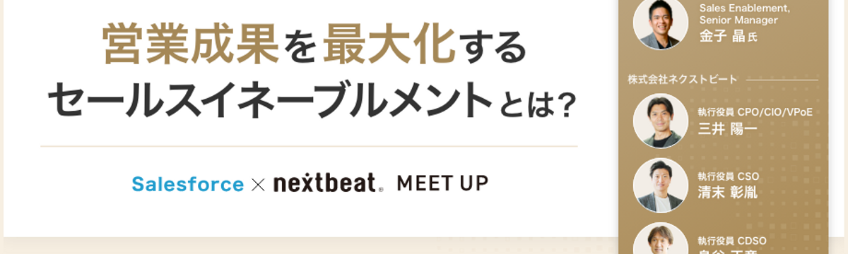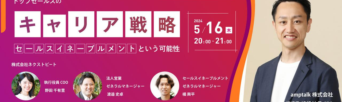 株式会社ネクストビート over 1 year ago Follow ネクストビート 採用担当 5/16(木)meetup開催「トップセールスのキャリア戦略~セールスイネーブルメントという可能性~」 今月、ネクストビートMEET UPをオンライン&対面で開催します!!今回のテーマは、「トップセールスのキャリア戦略~セールスイネーブルメントという可能性~」です。米国セールスイネーブルメントの大... Read more