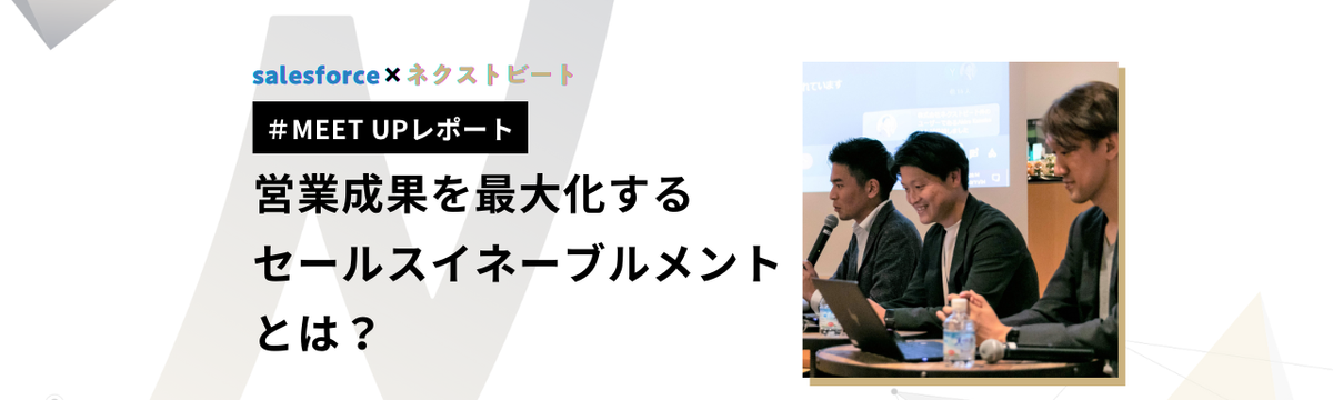 株式会社ネクストビート almost 3 years ago Follow Akane Hosokawa 【11/24開催】世界最先端の営業組織を持つセールスフォース・ジャパン×ネクストビートのコラボイベント!「営業成果... 11月のネクストビートMEET UPは、本社(@恵比寿)でのオフラインとオンライン両方で開催いたします!今回のテーマは「営業成果を最大化するセールスイネーブルメントとは?」セールスフォース・ジャ... Read more