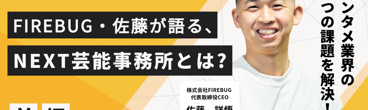 株式会社FIREBUG over 1 year ago Follow Shogo Sato FIREBUGが目指すのは「NEXT芸能事務所」の立ち位置〜FIREBUGの事業について(前編)〜 こんにちは。FIREBUGの佐藤ですFIREBUGは「エンターテインメントで人を豊かにする」というミッションを掲げています。ミッションの実現に向けて、全社一丸となって取り組んでいるのが「タレント... Read more