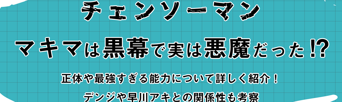 株式会社ひかりてらす over 4 years ago Follow 大河原 三紗子 [チェンソーマン ]マキマは黒幕で実は悪魔だった⁉正体や最強すぎる能力について詳しく紹介!|デンジや早川アキとの関... 圧倒的な強さと美しさを兼ね備えているデンジ直属の上司マキマ。その強さと容姿端麗の姿に合わせて、ミステリアスな一面を見せるマキマに魅了されたファンも少なくありません。今回は「チェンソーマン」のメイ... Read more
