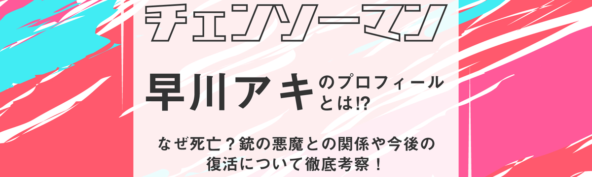 株式会社ひかりてらす about 4 years ago Follow 大河原 三紗子 [チェンソーマン]早川アキのプロフィールとは⁉なぜ死亡?銃の悪魔との関係や今後の復活について徹底考察! デビルハンターとして活動しながら、最終的には銃の魔人となってしまい凄惨な死を迎えた早川アキ。あまりにも唐突で最悪な死に方に、言葉を失った読者も少なくありません。そこで今回は早川アキのプロフィール... Read more