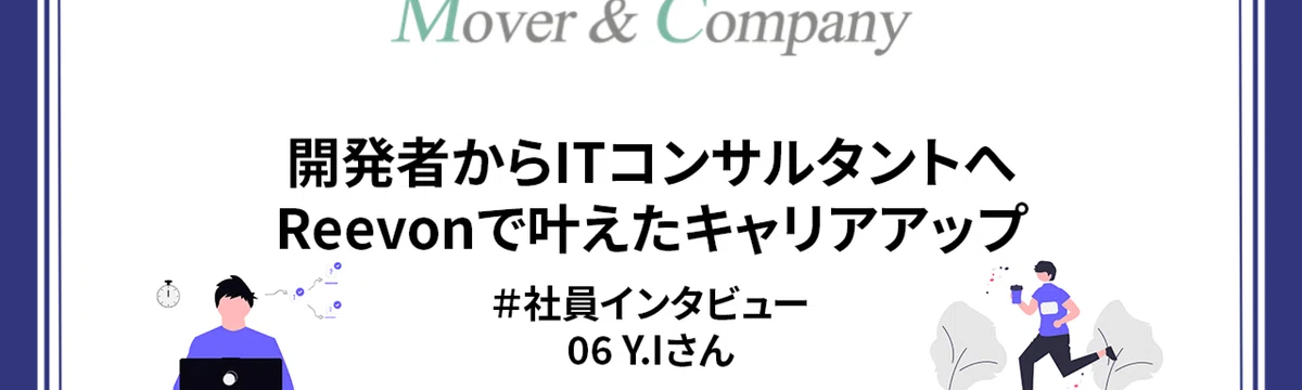 社員インタビュー 1 day ago Follow Yuma Kato 開発者からITコンサルタントへ。Reevonで叶えたキャリアアップ こんにちは!MOVER&COMPANY HR戦略本部の加藤です。今回は弊社noteに掲載されている記事を紹介させていただきます!※なお、記事内容はインタビュー当時のものです。今回はグループ会社で... Read more