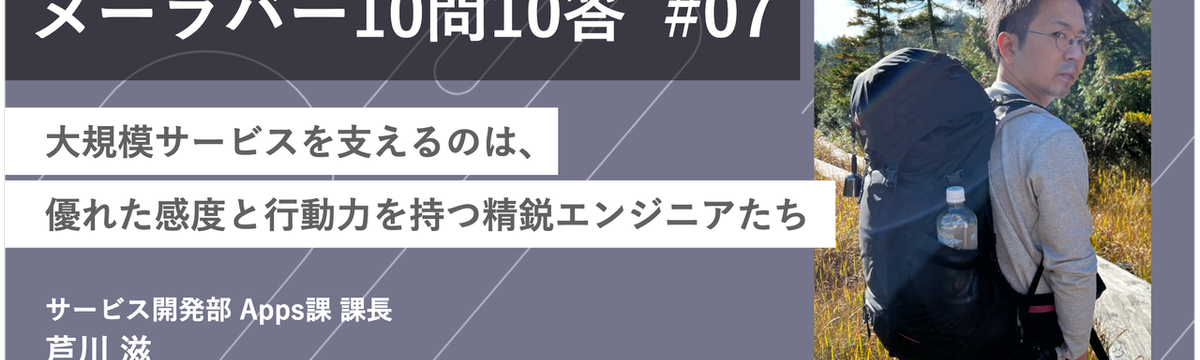 Interview 11 months ago Follow Momoko Koga and 1 others 【10問10答】Apps課長 芦川 / 大規模サービスを支えるのは、優れた感度と行動力を持つ精鋭エンジニアたち ※2014年12月時点での役職名ですこんにちは!採用チームの古賀です。さて今回は、Apps課で課長を務める芦川のインタビューです😊メンバーに対する想いを聞く中で、Appsチームの雰囲気や魅力が伝... Read more