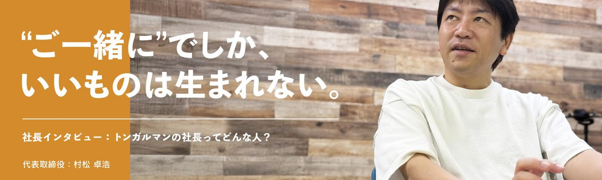 トンガルマン株式会社 2 days ago Follow Koji Minohara “ご一緒に”でしか、いいものは生まれない。ートンガルマンの社長ってどんな人?(仮) ──今日は会社紹介を通して、社長の村松さんがどんな人で、どんな価値観で会社を動かしているかをうかがいたいと思います。よろしくお願いします。村松: はい、お願いします。自己紹介とトンガルマン参画... Read more