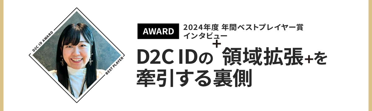 メンバーのこと 14 days ago Follow 採用 チーム 【AWARD受賞者インタビュー】年間ベストプレイヤー賞:「領域拡張」を牽引する裏側 D2C ID社員が選ぶ年間ベストプレイヤー賞、2024年の受賞者はプロジェクトマネージャーの波多野桃子さん。前回ノミネートからの飛躍の背景には、広告やデジタル領域にとどまらず、グッズ制作や動画デ... Read more