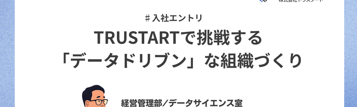TRUSTART株式会社 about 1 month ago Follow Ryoko Shirato 【入社エントリ】TRUSTARTで挑戦する「データドリブン」な組織づくり 2025年2月に、データビジネスストラテジストとしてTRUSTARTに入社したWです。今回は、私がなぜTRUSTARTに入社を決めたのかを書いてみようと思います。TRUSTARTにご興味のある方... Read more