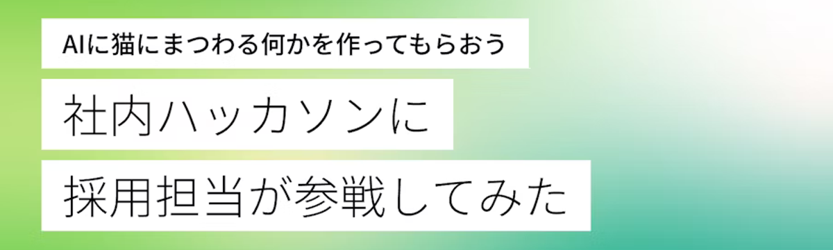 株式会社ソニックガーデン about 1 month ago Follow 西田 優衣 社内ハッカソンに採用担当も参戦してみた〜AIに猫にまつわる何かを作ってもらおう ※ こちらの記事はソニックガーデン公式ブログより転載したものとなります。こんにちは!micchanAIです。ソニックガーデンでは毎月「SGハッカソン」という社内イベントを開催しています。今回は、... Read more