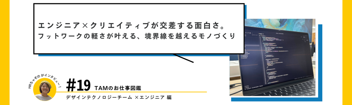 TAMのお仕事図鑑 about 1 month ago Follow 茶園 舞穂 エンジニア×クリエイティブが交差する面白さ。フットワークの軽さが叶える、境界線を越えるモノづくり TAMメンバーにインタビューする「TAMのお仕事図鑑」シリーズ。今回は工学分野の博士で、現在TAMでAI活用を推進するエンジニアの福岡さんに話を聞きました。—— TAMに入る前は、どんなことをさ... Read more
