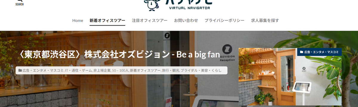 株式会社オズビジョン about 2 years ago Follow 郁也 小柳 バーチャルオフィス紹介メディア、『バチャナビ』でオズビジョンのオフィスが掲載されました!!🧐 こんにちは!オズビジョン広報担当です。今回は株式会社DINAMICAが運営するバチャナビにて、オズビジョンのオフィスを紹介いただきましたので紹介させていただきます!!📢『バチャナビ』とは?バチャ... Read more