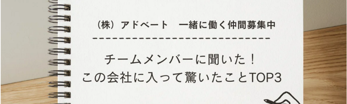 株式会社アドベート about 1 month ago Follow 株式会社 アドベート チームメンバーに聞いた!この会社に入って驚いたことTOP3 こんにちは!株式会社アドベート採用担当です!今回の記事は、「アドベートに入って驚いたこと」をTOP3形式でチームメンバーに聞きました!驚き①未経験でも安心!「カリキュラムが想像以上にしっかりして... Read more