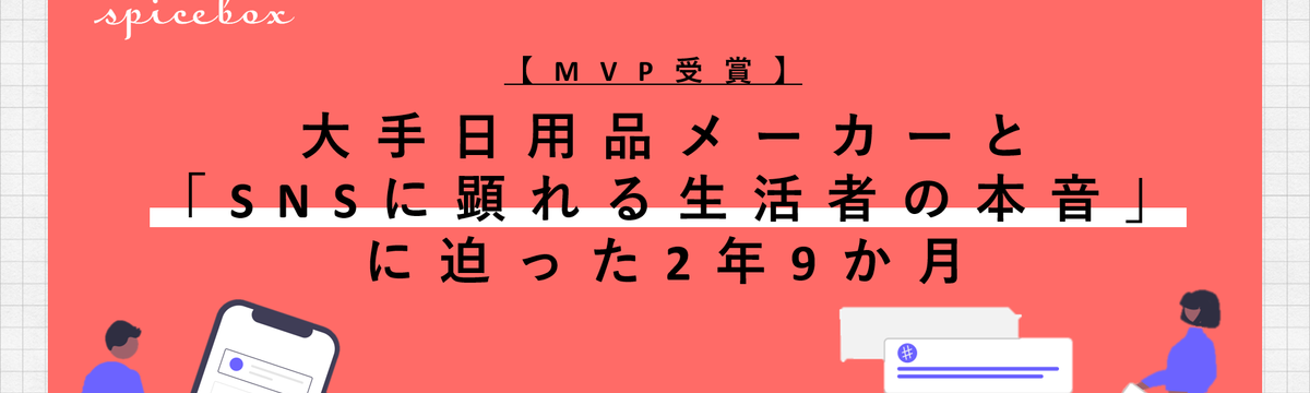 株式会社スパイスボックス almost 4 years ago Follow 愼太郎 阿久津 【MVP受賞】大手日用品メーカーLION様と「SNSに顕れる生活者の本音」に迫った2年9か月 こんにちは、スパイスボックス広報の阿久津です。今回は入社5年目で、大手日用品メーカー・LION様とのお取り組みを担当する社員Oさんにインタビューを実施しました。約2年半以上に渡る取り組みがスパイ... Read more