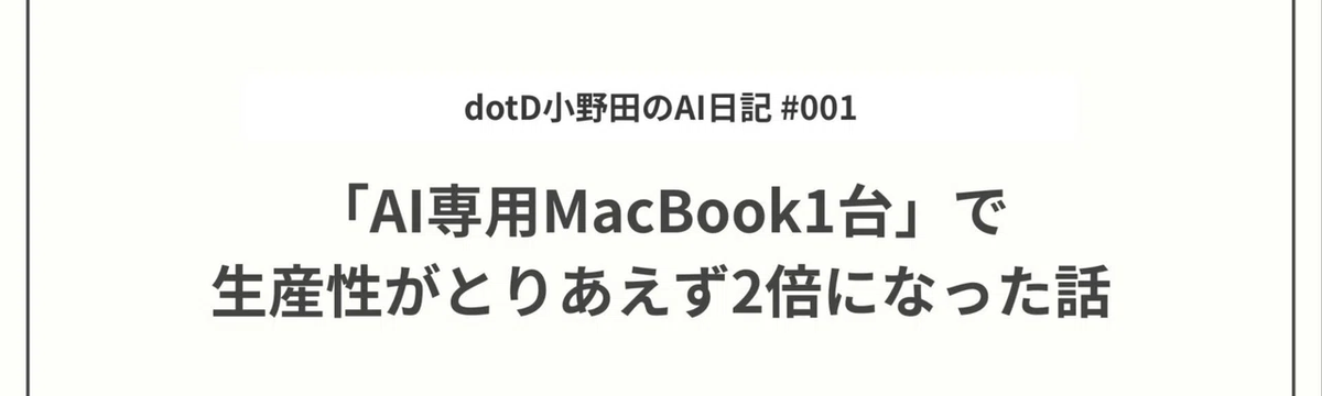 株式会社dotD 12 days ago Follow kirita kana 【AI日記】2026年、「AI専用MacBook1台」で生産性がとりあえず2倍に近くになった話 2026年2月27日にdotD noteに投稿された記事です。こんにちは。dotDの小野田です。2026年も2月に入り、いよいよ「AIが単なる道具から、同僚(エージェント)に変わったな」と肌で感... Read more
