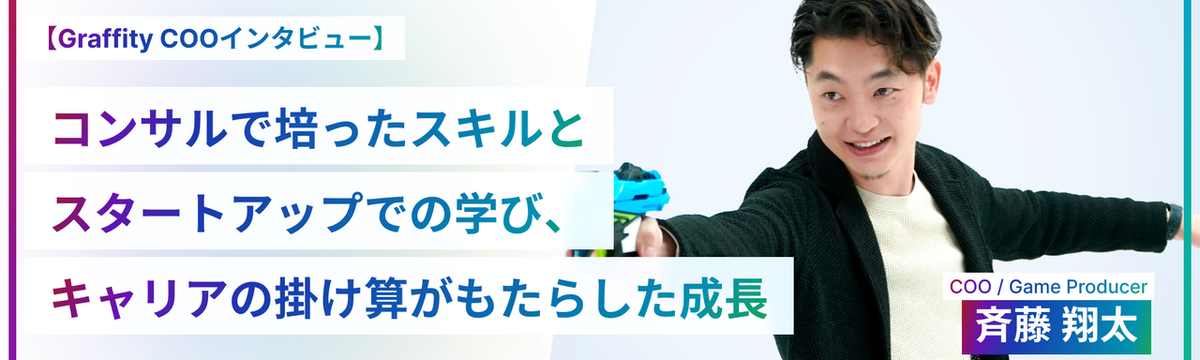 Graffity株式会社 over 1 year ago Follow Atsushi Saida and 1 others コンサルで培ったスキルとスタートアップでの学び、キャリアの掛け算がもたらした成長【Graffity COOインタビュー】 戦略コンサルタントからGraffityにJOINした斉藤翔太(COO/ゲームディレクター)。コンサルとしてのスキルの成長曲線に悩み新領域のスタートアップにチャレンジした経緯から、コンサルで培った... Read more