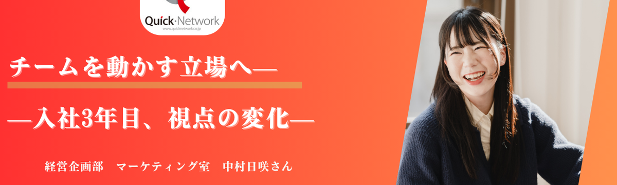 クイック・ネットワーク株式会社 17 days ago Follow 神田 優月 【社員インタビュー】チームを動かす立場へ —入社3年目、視点の変化— こんにちは。インターン生の神田です。今回は2023年4月に新卒入社された中村日咲さんにインタビューしました。 スピード感あふれるキャリアのスタートから3年。入社3年目を迎えた中村日咲さんに、これ... Read more