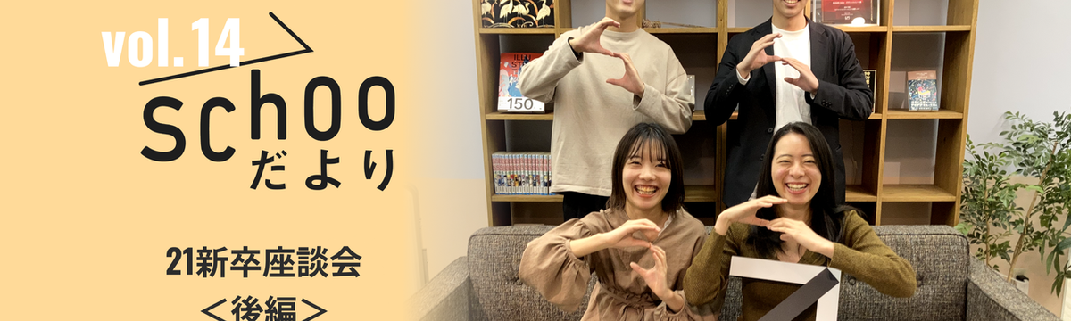 Schoo Members over 3 years ago Follow 森 実咲 独り立ちの早さの秘訣は、圧倒的なミッション・ビジョン理解の深さに。 21新卒メンバーによる座談会! Schooだよ... こんにちは!コミュニケーション戦略室のルーシーです。今月のSchooだよりの主役は、21新卒の4人のメンバー!それぞれこの1年間で、本当に頼もしく成長しました。座談会の後半は、彼らの社会人1年目... Read more