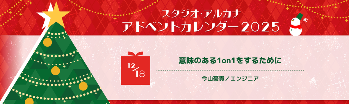 株式会社スタジオ・アルカナ 20 days ago Follow Goki Imayama 意味のある1on1をするために はじめに皆さん有意義な12月を過ごしていらっしゃいますでしょうか。スタジオ・アルカナの今山です。一時期の熱に浮かされたような1on1ブームもぼちぼち落ち着いてしまい、かつて心理カウンセラー志望だ... Read more