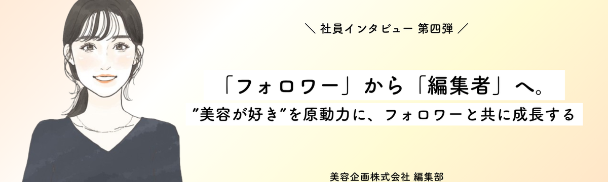 美容企画株式会社 16 days ago Follow Kana and 1 others ”親しみやすく、頼れる存在でありたい”ー立ち上げ期からメディアを育ててきた編集部Rinaさんのストーリー ”親しみやすく、頼れる存在でありたい”ー立ち上げ期からメディアを育ててきた編集部・Rinaさんのストーリー今回は、美容企画株式会社の編集部で活躍するRinaさんにお話を伺いました。新卒で美容企画... Read more
