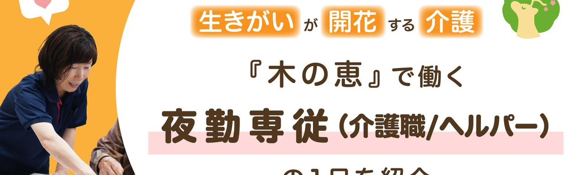 株式会社木の恵 about 1 year ago Follow 豊田 将大 生きがいが開花する介護!木の恵で働く夜勤専従(介護職/ヘルパー)の1日 こんにちは。株式会社木の恵(このえ)代表、山下優奈(やましたゆうな)と申します。本日は、当施設で働く夜勤専従(介護職/ヘルパー)の1日をご紹介させていただきます。実際に当施設で働く際にどんな1日... Read more
