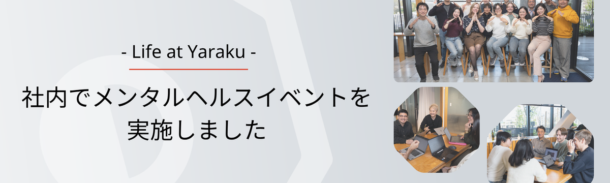 Yaraku,Inc.(八楽株式会社) 10 months ago Follow 鈴木 裕子 社内でメンタルヘルスイベントを実施しました! 皆さんはストレスチェックを受けたことがありますか?セッションの中で行った心理テスト八楽の特異性とメンタルヘルス今後の八楽のメンタルヘルスの取り組み皆さんはストレスチェックを受けたことがありますか... Read more