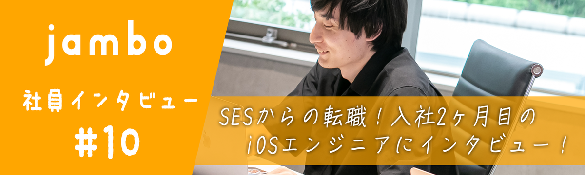 株式会社Jambo 社員インタビュー over 1 year ago Follow Hazuki Yoshimoto SESからの転職!入社2ヶ月目で新規アプリの開発を行うiOSエンジニアにインタビュー! 株式会社ジャンボの吉本です!前回のストーリーもご覧いただきありがとうございました!今回は入社2ヶ月目のiOSエンジニア越智さんにインタビューを行いました!🏁越智さんはSES企業からジャンボに転職... Read more