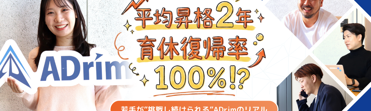 株式会社ADrim about 2 months ago Follow pr&hr ADrim and 22 others 27卒必見!|平均昇格2年、育休復帰率100%!?若手が”挑戦し続けられる”ADrimのリアル こんにちは。ADrim採用・広報の成田です❄️今回は、数字とメンバーの声をヒントにしながら、ADrimという会社のリアルな姿をお伝えしていきます!就職や転職を考えるとき、「どれくらいのスピード感... Read more
