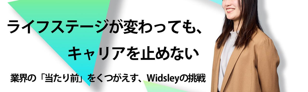 Widsley Inc about 1 month ago Follow 平岡 美怜 and 1 others ライフステージが変わっても、キャリアを止めない。業界の「当たり前」をくつがえすWidsleyの挑戦 長期的にキャリアを見つめたとき、「ライフステージの変化=キャリアの中断」と思っていませんか?結婚、出産、介護………様々な環境の変化で、それまでと同じ働き方ができなくなることはどんな人でも起こり得... Read more