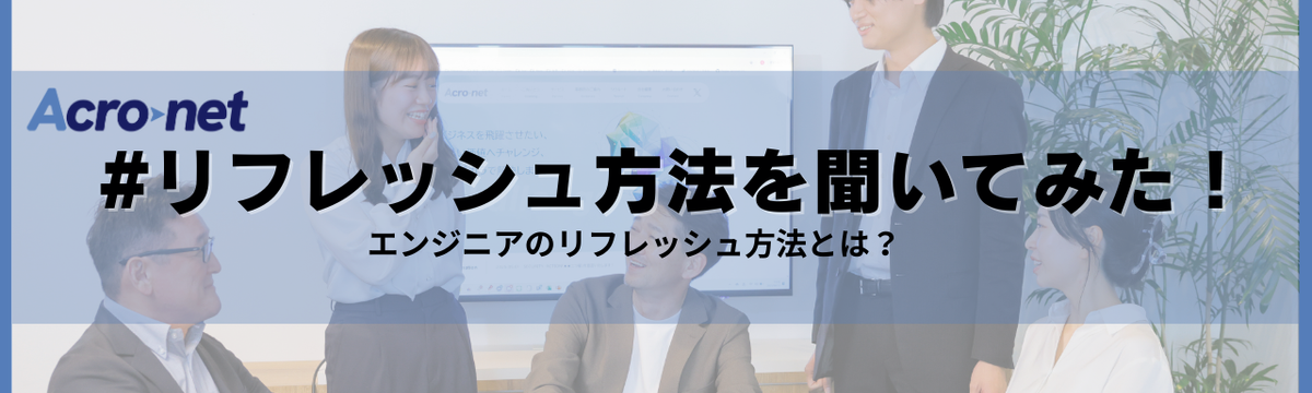 株式会社アクロネット 15 days ago Follow アクロネット 営業企画 アクロネットのエンジニアに、リフレッシュ方法を聞いてみた! こんにちは!アクロネット採用担当の川口です。集中力が命のエンジニアにとって、リフレッシュの時間は大切です!そこで今回は、アクロネットのエンジニアメンバーに気分転換の方法を聞いてみました!結果は…... Read more