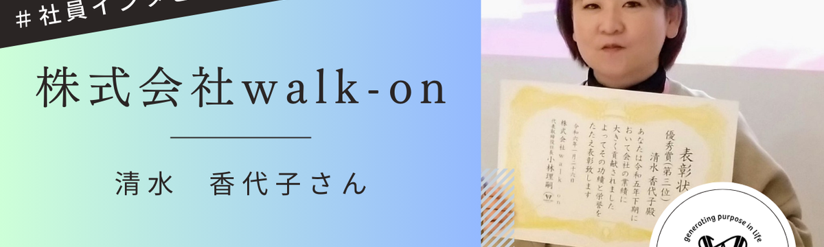 株式会社walk-on over 1 year ago Follow 柏民 知佳 and 1 others 【社員インタビュー ♯2】2023年下期 表彰者インタビュー!《第三位 清水香代子さん》 こんにちは!walk-on採用担当の柏民です(*'ω'*)ちょっと遅くなってしまったのですが…2023年下期の表彰者へインタビューしてみました!半年に1回おこなわれる総会で発表・表彰をされるwa... Read more