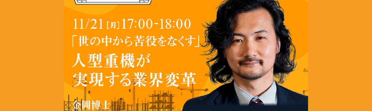 人機一体 イベント情報 almost 3 years ago Follow Kanta Umeda 【告知】オンラインウェビナー:THE OWNER 建設最前線業界変革カンファレンスへ登壇します。(アーカイブ配信あり) この度、弊社代表の金岡博士が、ZUU 様主催の THE OWNER 建設最前線 業界変革カンファレンスにて、登壇をさせていただくことになりました!▼日時:2022/11/21(月)17:00 −... Read more