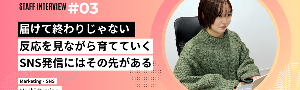 INTERVIEW|社員インタビュー 6 days ago Follow INREVO 採用担当 and 1 others 株式会社INREVO|#03【社員インタビュー】届けて終わりじゃない。反応を見ながら育てていく、SNS発信にはその... こんにちは、株式会社INREVOの採用広報です🌸INREVOで働く社員のことを、もう少し具体的にお届けしたい!そんな思いで続けているリレー形式での社員インタビュー連載、第3回目はMarketin... Read more