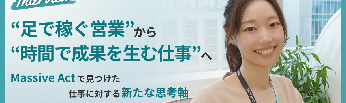 株式会社Massive Act about 1 month ago Follow Reina Hamazawa “足で稼ぐ営業”から“時間で成果を生む仕事”へ。ーMassive Actで見つけた、仕事に対する新たな思考軸ー こんにちは!Massive Act濱澤です!かなり前に、当社の従業員インタビューを紹介していましたが、今回そのアップデート版を出すことになりました!!今回は私、濱澤です!これまでのキャリアに加え... Read more