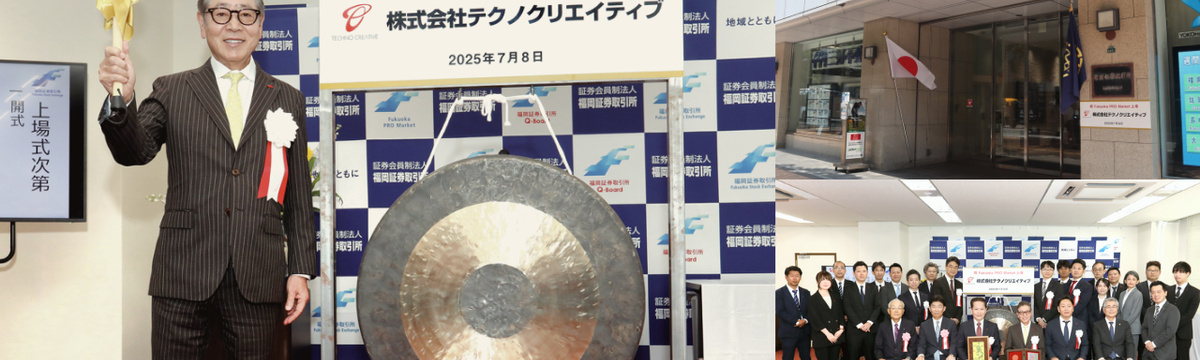 株式会社テクノクリエイティブ 3 months ago Follow 橋本 春香 【祝!上場】福岡の地で、次のステージへ。【福岡証券取引所 Fukuoka PRO Market】 2025年7月8日、(株)テクノクリエイティブは、福岡証券取引所が運営する「Fukuoka PRO Market」に株式を上場いたしました。この記事では、上場日に執り行われた上場式と、上場記念祝... Read more